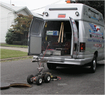 All American Sewer Service provides state-of-the-art main line video inspection. Our portable units can inspect pipes from 2” through 6” and our video truck can inspect main lines from 8” through 96”. Our pan and tilt camera with remote elevator attachment can adapt to changing conditions inside a pipeline. We provide detailed inspection reports, along with the video on either tape or CD for client review. High Tech electronic line locating is also available.